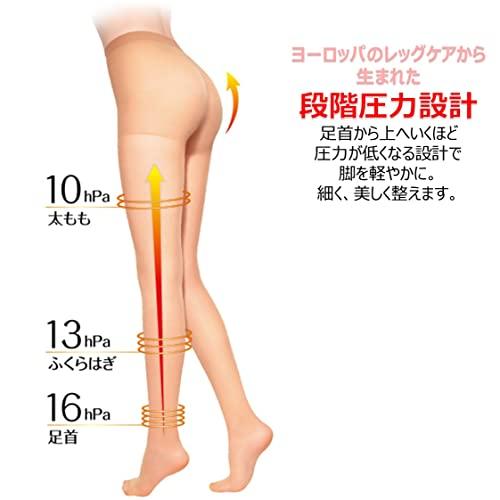 ●ヨーロッパのレッグケアから生まれた段階圧力設計(足首16hPa、ふくらはぎ13hPa、太もも10hPa)。