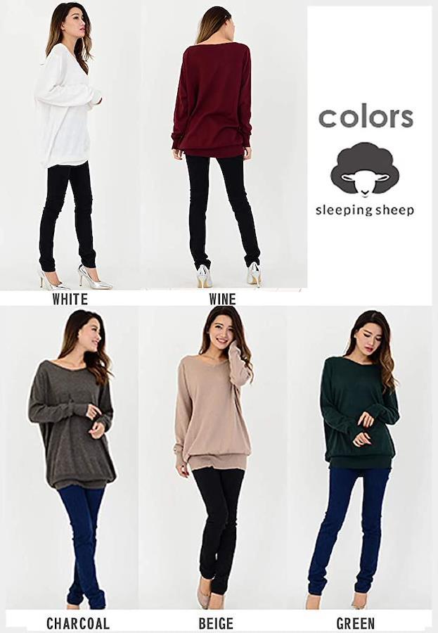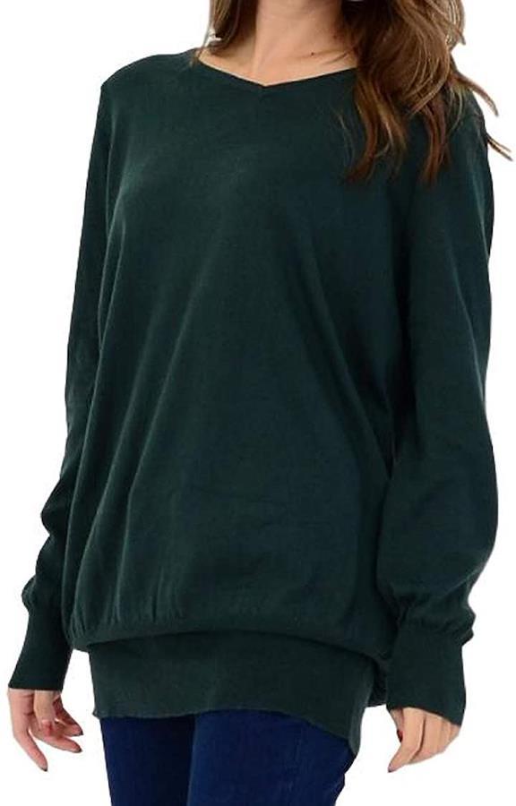 ゆったりちょいながVネックコットンニット無地ロングセーターシンプルチュニック大きいサイズレディース