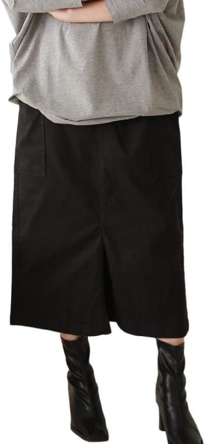 後ろ部分がゴム仕様なので着心地はリラックスなのにきれいめに使える、飽きの来ない膝下丈のスカートに仕上がっています。