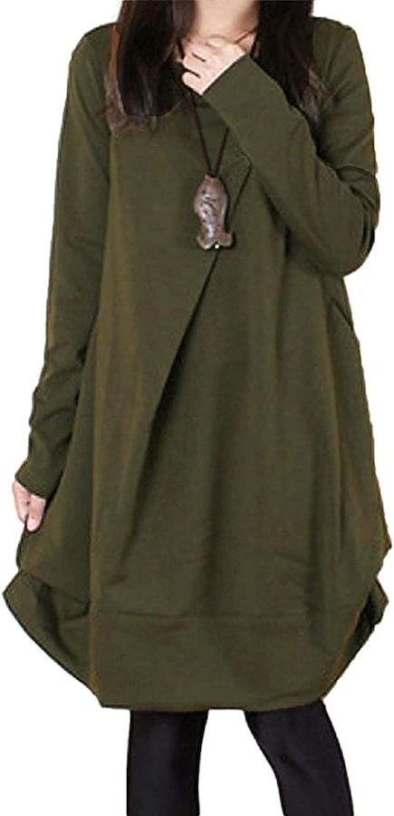 そんな方にぴったりのアイテムが登場です..細分のデザインで差がつくITEM..コクーン長袖チュニックワンピースのご紹介です。