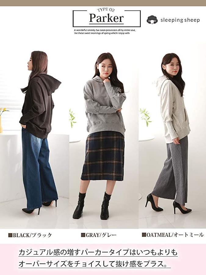 ・パーカータイプはカジュアル感がぐっと増して、いつもよりもオーバーサイズをチョイスして抜け感のでるルックスに仕上がり、おうち時間にもおすすめのデザインです・