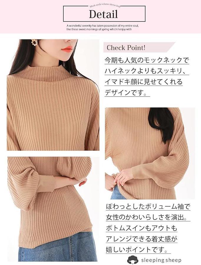 ぽわっとしたボリューム袖で女性のかわいらしさを演出。