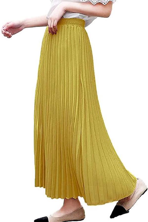 歩くたびに揺れる細めのプリーツが女性らしさを演出してくれます。
