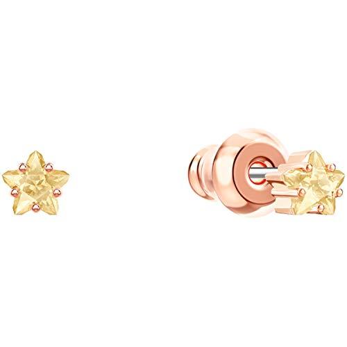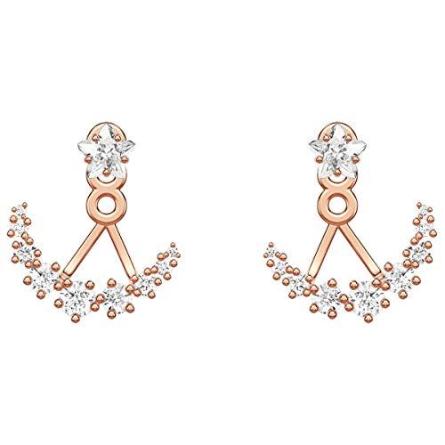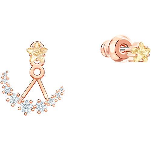 このローズゴールドトーンのピアスは、星型の透明なスワロフスキークリスタルスタッドトップと三日月型のイヤリングジャケットが特徴です。丸い透明なスワロフスキークリスタルで飾られています。