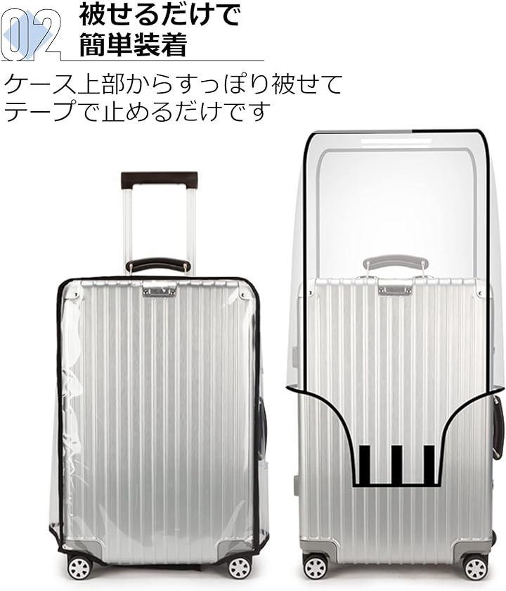 すっぽり被せることで装着が簡単なキャリーケースの保護カバーです。