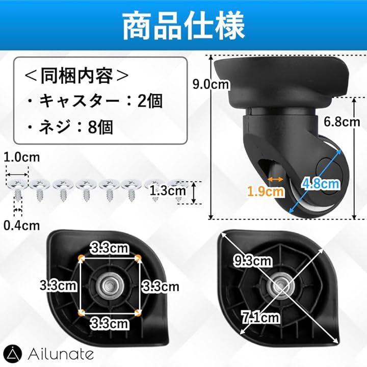 スーツケース キャスター 交換 タイヤ キット キャリーケース 車輪 ホイール キャリーバッグ ゴム 静音 修理 部品 車軸 取替え