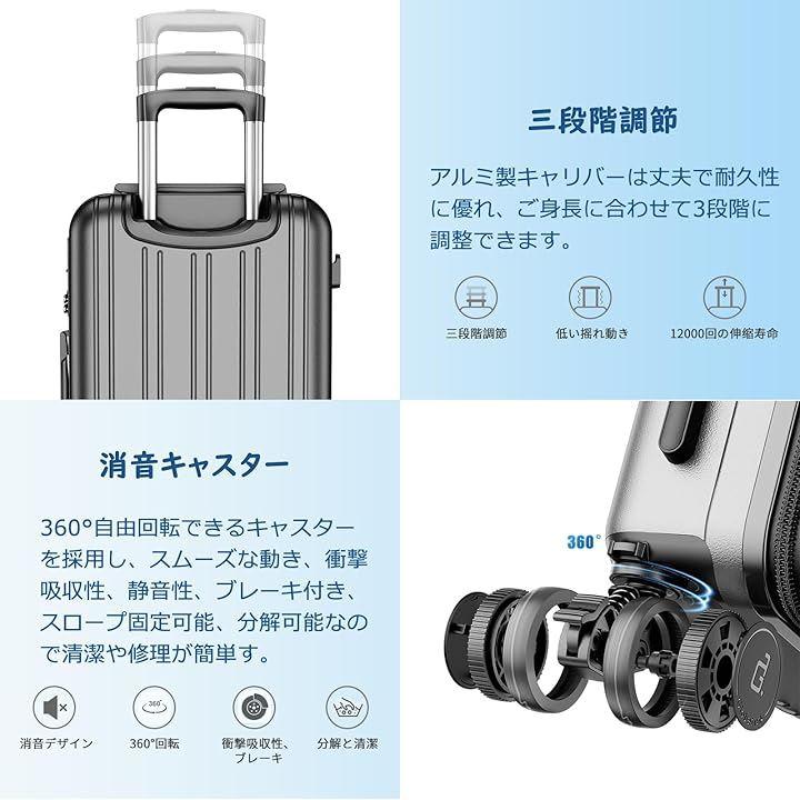 「取り外し可能、ブレーキ付き衝撃吸収キャスター」静音、耐久性に優れた双輪キャスター、スムーズな滑りを実現しながら、360度の自由回転もできます、特殊遮音材を使用しているため、通常のキャスターに比べカタカタ音が約30%軽減されます。凹凸のある道路での振動を軽減し、ブレーキ機能も備えているため。