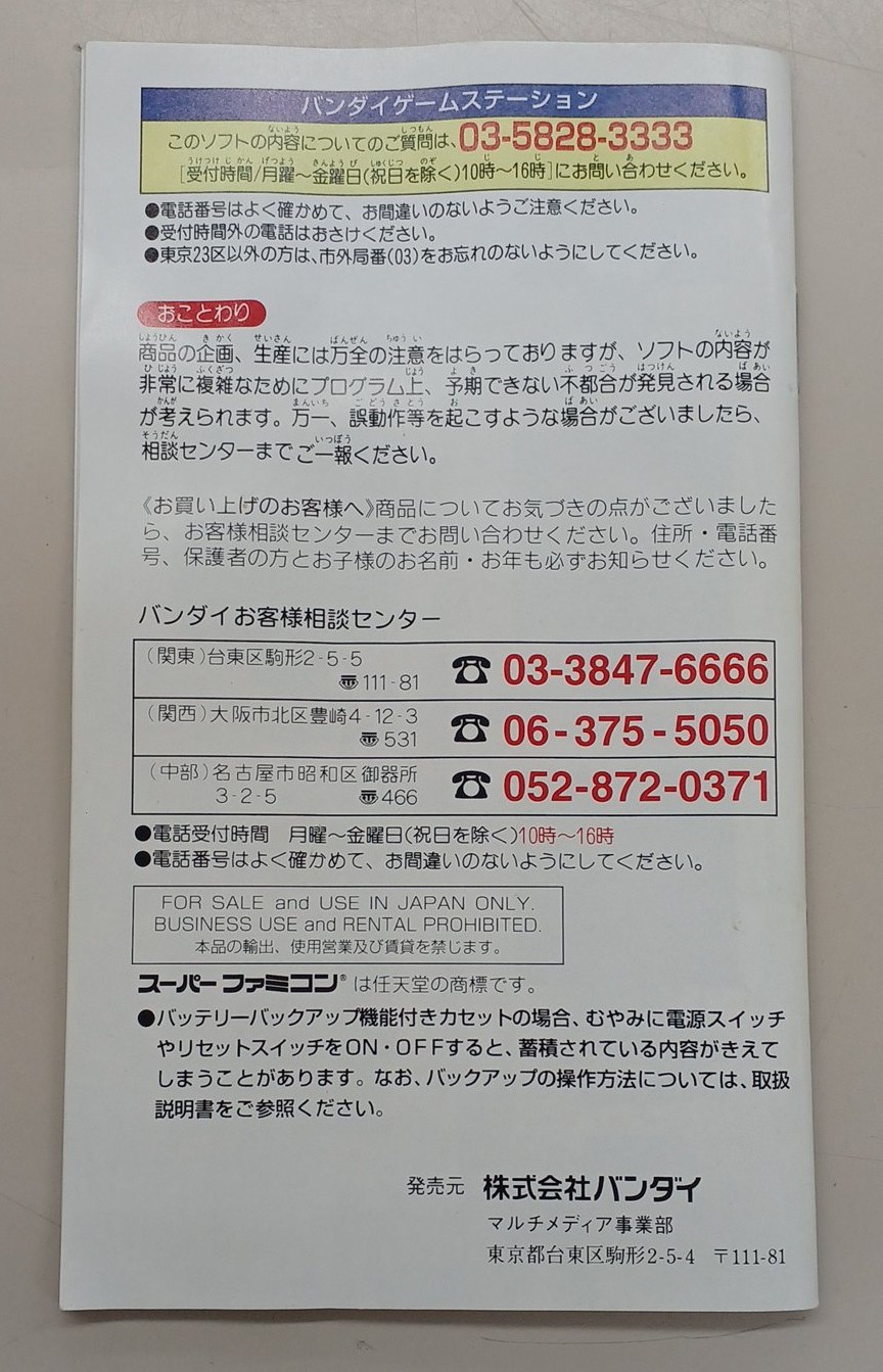 スーパーファミコン用ソフト ルインアーム バンダイ スーパーファミコンソフト バンダイルインアームスーパーファミコン用ソフト