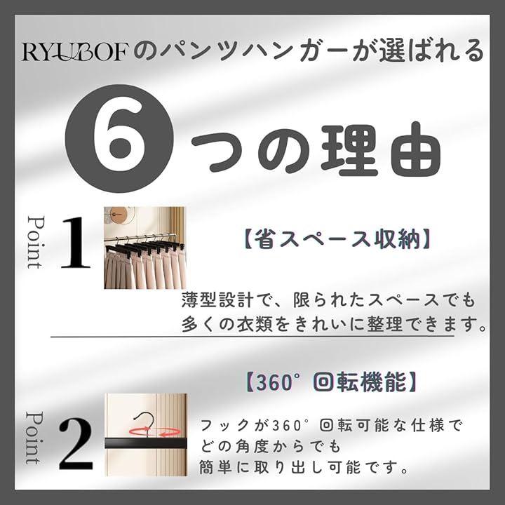 「360°回転機能」ハンガーのフックが360°回転可能な仕様で、ズボンやスカートをどの角度からでも簡単に取り出せ、忙しい朝でもご希望の衣類をすぐに選ぶことができます。