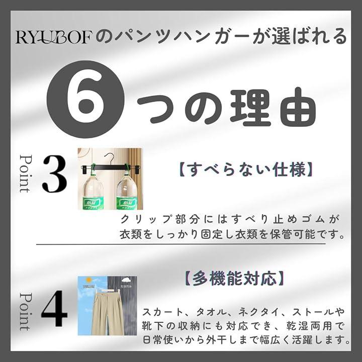 「多機能対応」スラックスやパンツだけでなく、スカート、タオル、ネクタイ、ストールや靴下の収納にも対応でき、乾湿両用で日常使いから外干しまで幅広く活躍します。