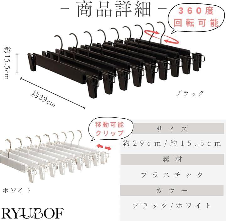 「幅広い対応サイズ」移動式クリップで23~29cmまで幅調節できるため、大人用から子供用までさまざまなサイズの衣類を収納でき、変形に強いABS素材で長くご使用いただけます。