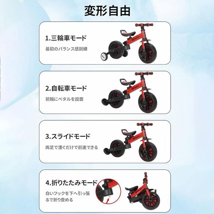 【5in1&多用途】2?6歳の子供に適した多機能の子供用三輪車です。子供の身長や体型に合わせてハンドルの角度とシート高さを調整できます。補助輪の取り外し変形が可能です。成長に合わせて三輪車、バランスバイク、ベビーウォーカーを工具なし簡単に自由に切り替えます。最大耐荷重は90kgです。モードの変換は簡単で、実用性が高いです。誕生日、お正月、クリスマスなどのプレゼントにとって、最適な選択であります。 【安定構造&快適性兼備】三角形の構造は安定性が高く、安全性がさらに保証されます。ステアリング制限より車の転倒を防止できます。シートはクッション効果が高く、自転車に乗れない子供たちに圧力がかかることはなく、簡単に使用できます。 【折り畳める&コンパクトに収納】:折りたたむとコンパクトになるので玄関や隙間に置いても場所を取らず、手軽に車に載せて遠くの公園やお出かけ先でも遊べます。工具不要で簡単組み立て!軽量で力不足な女性でも簡単に持ち運ぶことができます。 【特製広めタイヤ】面倒な空気入れも必要ありません。弾力性のあるタイヤが衝撃を吸収するので室外でも安心使用できます。太く大きなタイヤは砂利道も砂地もコンクリートを通っても跳ねたり滑ったりも全くなく、タイヤがしっかりしており、安定感があります。 【品質保証】お客様に安心して当商品をお試し頂きたい為、商品の品質には万全を期しておりますが、万が一商品に不具合があった場合やご満足いただけなかった場合はお手数お掛けしますが、レビュー投稿の前に一度、【出品者に連絡】をクリックして、当店までご連絡いただきますようとお願いします。早急に、商品の返品やご交換等の対応をさせていただきます。