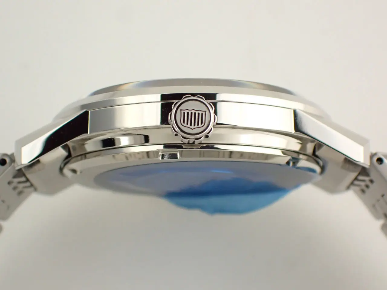 中古だが非常に綺麗な状態。時計本体やブレスのキズ等は光の角度により所々散見できる程度で、展示品・もしくは日常使用10回未満のような使用感がある状態。
