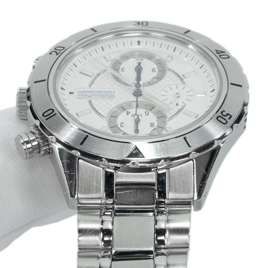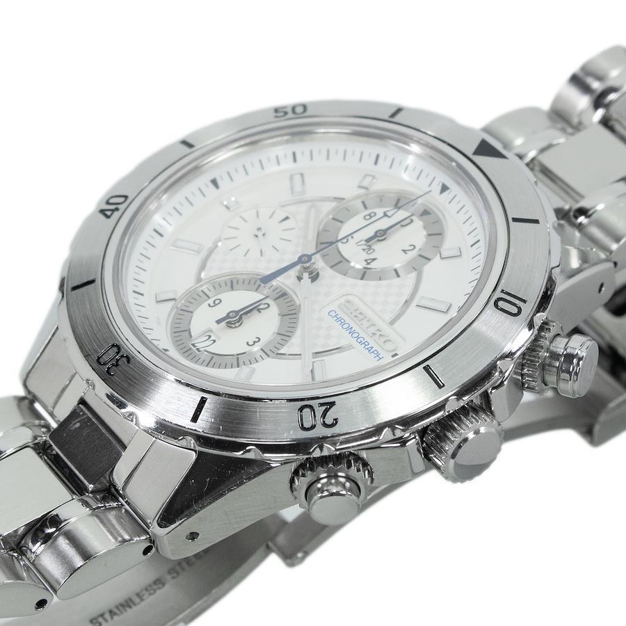 こちらはスポーティーなデザインのクロノグラフを搭載した、セイコーの腕時計でございます。