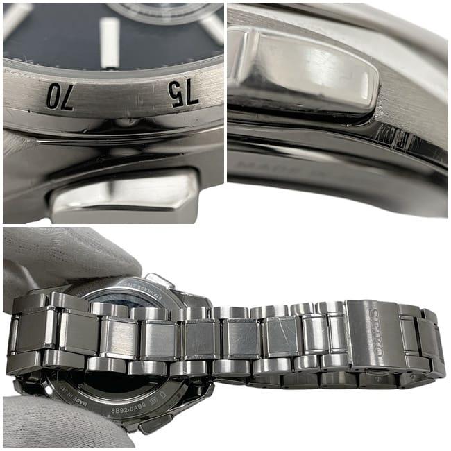 商品名:腕時計ワールドタイムクロノクロノグラフブランド名:セイコー/SEIKO商品ランク:Aランク素材:SSサイズ:(約)ケース:w:46.7mmリューズ込×d:11.8mm、風防ガラス直径:35.9mm、ベルト幅:20mm、ブレス:21.5cm総重量:約149.0g/5.25oz型番・品番:8B92-0AB0シリアル:840***ライン:ブライツカラー:文字盤:ネイビー、ブレス・ケース:シルバームーブメント:ソーラー電池仕様:クロノグラフデイト付属品:箱、ケース、印刷物詳細説明:動作確認済み。ブレスやベゼル縁に傷、ブレス縁に小傷有、その他目立った使用感はなく非常に綺麗なお品物です。保証・ご注意:時計の保証期間は商品到着日より3ヶ月間とさせて頂きます。使用した際の破損や水没したなどお客様都合による保証については、保証対象外となりますので、予めご了承下さい。 ※撮影時の環境によって、実物と写真で多少色合い等に違いがある場合がありますので、予めご了承下さい。※管理ナンバー:f-24332no,05200121251011