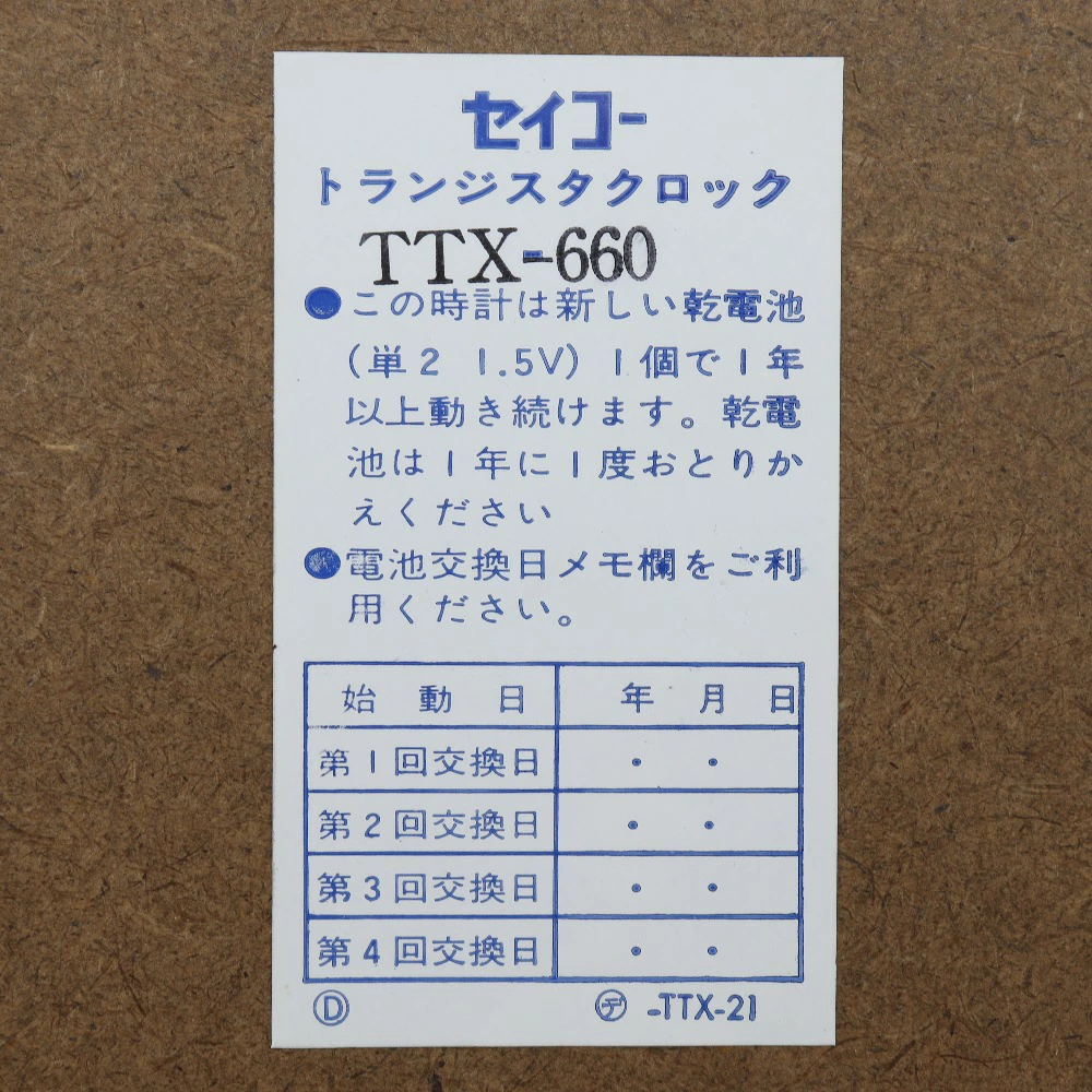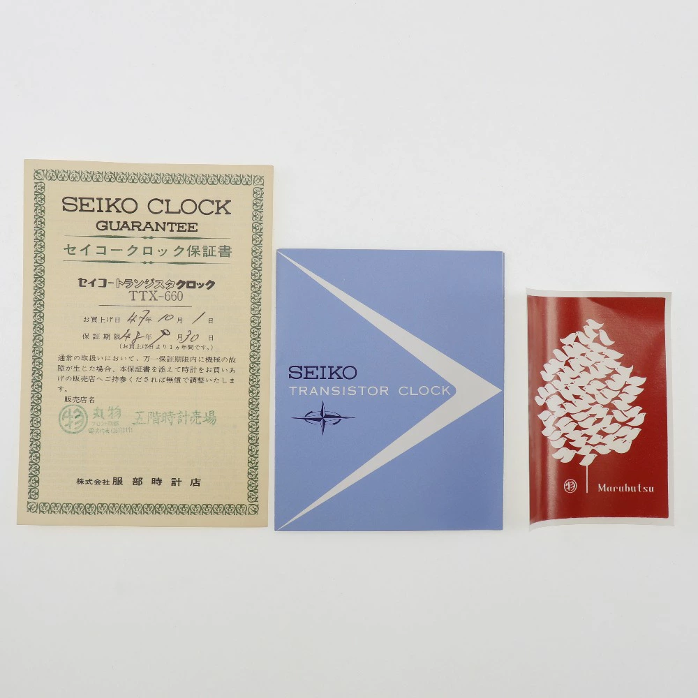 長期保管、未使用品。電池を入れて、今は時間も正常に動作していますが50年以上前に購入されたものですので、保証は出来かねます。付属の乾電池も古いためご使用は出来ません。某会社の竣工の記念品で、時計の裏に「新社屋竣工記念 株式会社〇〇」と記載がございます。ご理解の上ご購入をお願い致します。