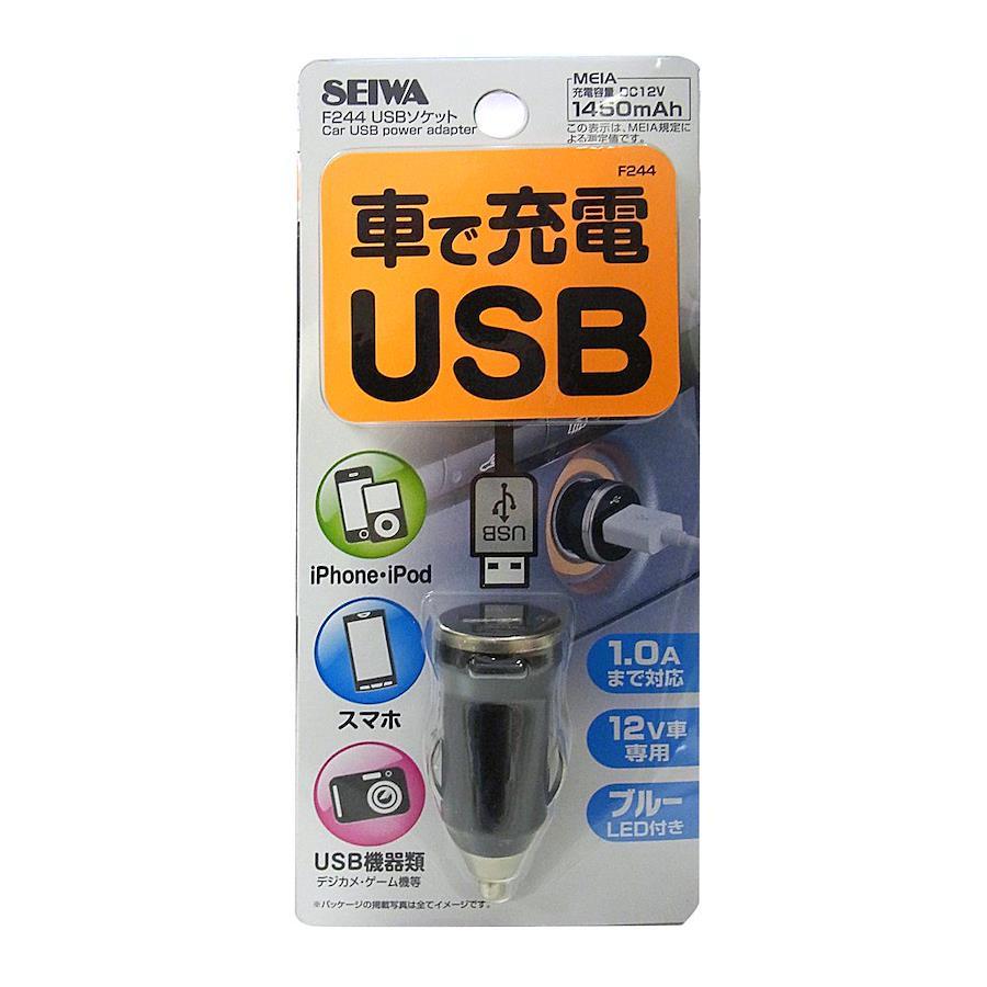 セイワ(SEIWA) 車内用品 シガーソケット充電器 パワープラグ USBソケット ブラック F244 USB接続