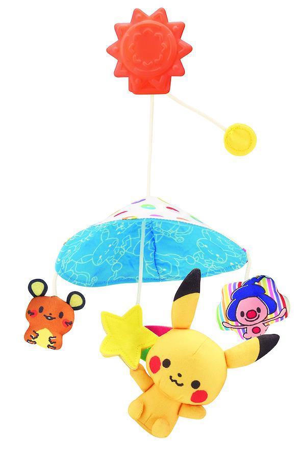 ポケモンのベビー向けブランド"monpok?(モンポケ)"からはじめてのベビー玩具シリーズが登場!やわらかな素材のベビーカーメリー。ベビーカーの日よけ部分にクリップで取り付けられ、おでかけ時に赤ちゃんがゆらゆら揺れるメリーを眺められます。ピカチュウの中には鈴が入っているので、ゆらすとリンリン音がします。星の部分に面ファスナーが付いており、安全のため引っ張っると外れるようになっています。やわらかな素材で出来ているので、赤ちゃんのはじめてのおもちゃにぴったり。[セット内容]クリップ付きかさ、、ピカチュウマスコット(.co.jpより) (C)Pok?mon. (C)Nintendo/Creatures Inc./GAME FREAK inc. 対象年齢:0か月以上 主な素材:ポリエステル 製造元リファレンス:?802201 製品サイズ:14x19x28cm