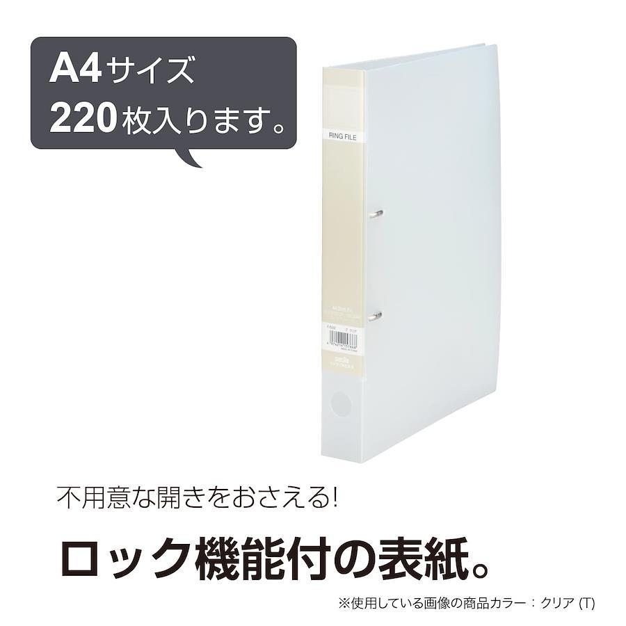 使いやすさを考えた機能を備え、環境に配慮したロックリングファイル。書類の端がきれいに揃うD型リングとじ具を採用しており、書類の途中差し替えが簡単です。表紙が不意に開いてしまう心配がないロック機能が付いた表紙。とじ具と表紙が簡単に分別できます。大量の書類もしっかり押さえるオリジナル形状のロックプレート付。ファイルが引き出しやすいフィンガーホール付。背ラベル付。とじ具と表紙が簡単に分別できる、環境に配慮したロックリングファイル。とじ具を表紙のストッパーにはめることにより表紙がロックされ、たわみを解消し自立安定します。便利なフィンガーホール付、ファイルが引き出しやすいように背の部分にフィンガーホール(指掛穴)が付いています。書類を固定するロックプレート、オリジナルのロックプレートを、とじ具に固定すれば、書類がしっかり押さえられます。背ラベルの抜き差しが簡単にできる指穴付。ファイルの収容枚数の表示は、コピー用紙を使用し、収容寸法1mmあたり10枚で算出しております。