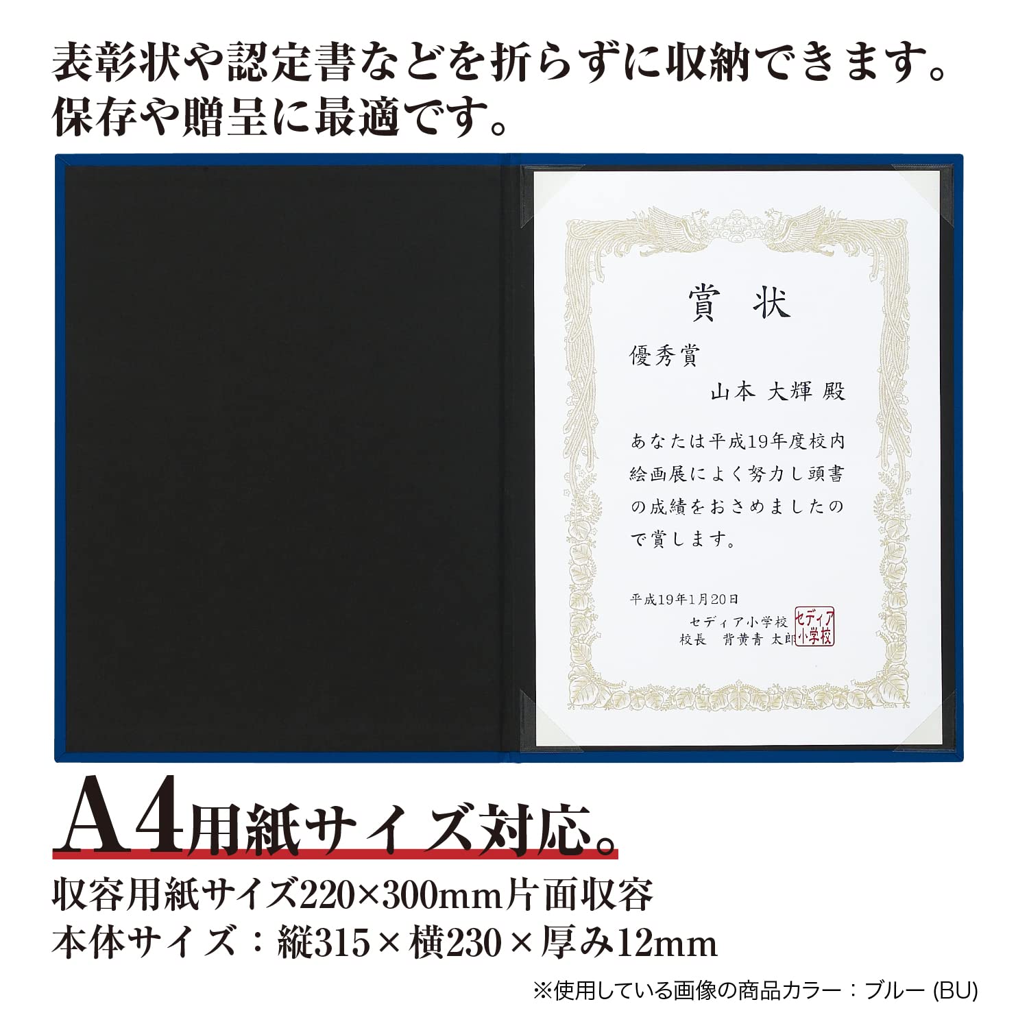 【サイズ】235×317×5mm 材質/紙規格/A4サイズ 4隅コーナーポケット付表紙は高級感のあるヌバック調賞状や認定証などの贈呈に好適【免責事項】メーカーによる商品リニューアルに伴いパッケージが変更が行われた場合、新パッケージでお届け致します事ご了承願います。