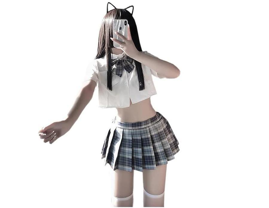 セット内容:半袖ミニ丈トップス / ミニスカート / Tバック / ネクタイ / タイツ 白【サイズ】フリーサイズ (目安:身長約145cm~172cm S-Lサイズ 体重40-59kg ウエスト60-94cm)生地:主はポリエステル繊維。柔らかくて通気性の良い素材、肌に優しい。一晩女子高生限定!!正統な学生制服にセクシーなデザインを加え、ウエストラインを大胆に露出するのへそ出しは魅力まんまん♪ 定番な制服プレーは懐かしい思い出を浮かぶ、クライマックスの同時にもう一回青春を感じましょう。【こんな人にオススメ】誕生日、結婚記念日、クリスマス、ハロウィン、など特別な日の思い出作りや、コスプレに興味がある・非日常を体験してみたい人にオススメ。(#lf)(#lf)(#lf)商品購入前に、ストア紹介ページをご確認ください。