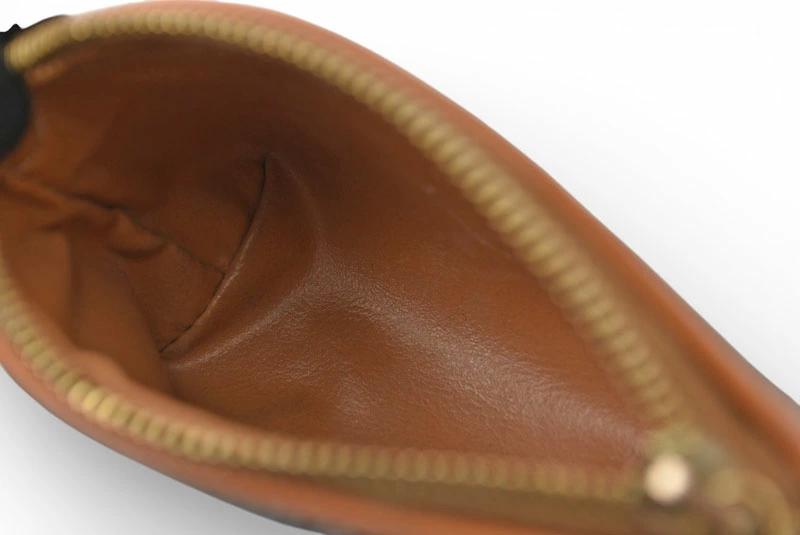 上品で落ち着いた印象を演出します。コインケースとしてのほか、マチがあるためリップやアクセサリーを収納するミニポーチとしても利用可能。
