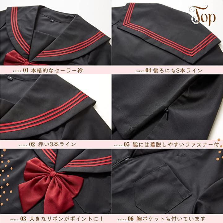 ・ブラックのセーラー服にエンジカラーのリボンタイ付きで、昔懐かしいタイプの学生服です。