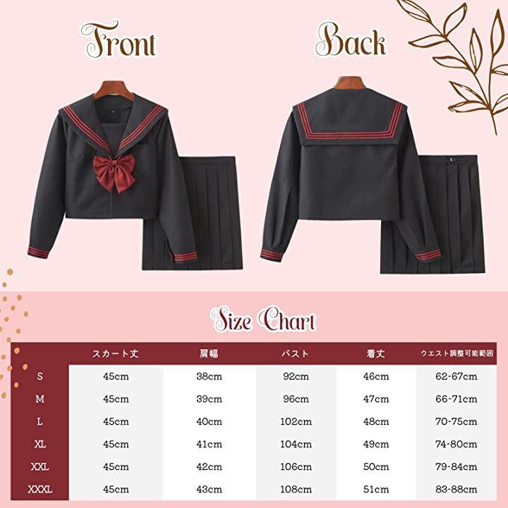 「セット内容」:リボンタイ、長袖トップス、スカート「サイズ」:S,M,L,XL,XXL,XXXL「素材構成」: 主にポリエステル繊維