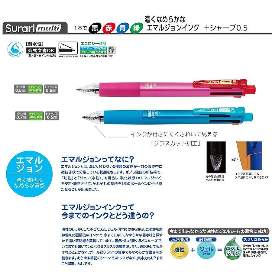 水と油の混ざったまったく新しいインクで、油性のしっかりした手ごたえと水性(ゲル)のさらさらした軽さを兼ね備えた画期的なインク。