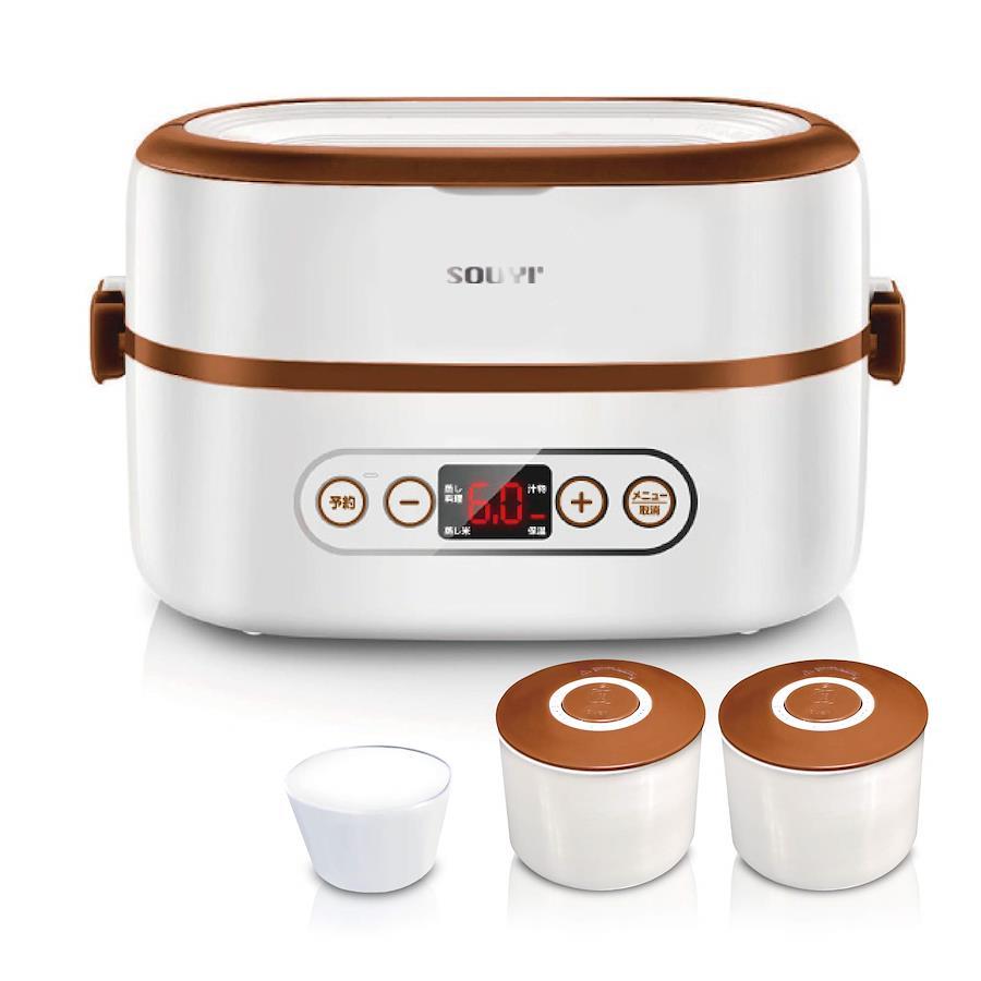 【2種類の料理が同時にできるマルチ炊飯器】本製品は水蒸気で食材を蒸しながら調理ができる商品です。お茶碗としても利用できる陶器製の容器が2つ付属しているので、本体の左右で違う食材の調理を一度にできる点が特徴です。