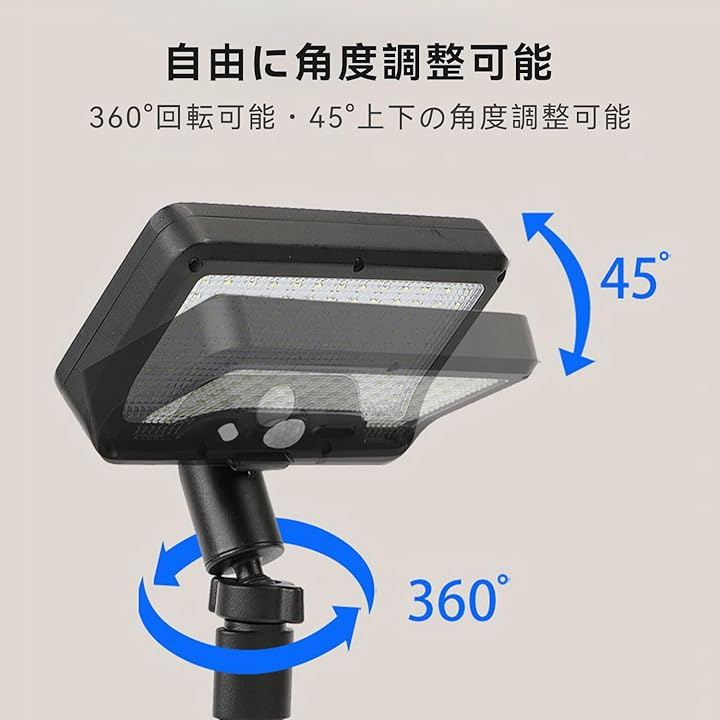 「設置簡単&調整自由な多機能デザイン」埋め込み式ソーラーライトは工具不要で3秒設置完了。上下45°角度調節+360°回転ヘッドで、駐車場・ウッドデッキ・花壇などあらゆる場所を最適照射。