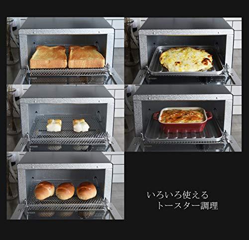 ・コンパクトでも庫内広々「コンパクト&ワイド庫内」…トーストは一度に2枚焼け、ピザは直径20㎝(8インチ)が丸ごと焼けるサイズです。・1000Wのヒーターを採用。トーストはもちろん、グラタンやピザの調理にも使えます。・ガラス部分を大きくしデザイン性を追求。中の調理状態も見えやすくなりました。 さらに、とっ手の幅をワイドにすることで持ちやすくなりました。・グラタンやホイル焼きにも使える調理トレイつき・焼きムラをおさえる 「ネット状焼アミ」・はずせるパンくずトレイ・焼きアミ…お手入れが簡単な設計になっています。