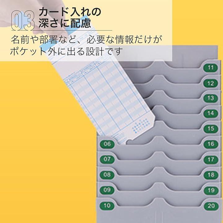 カードホルダーのポケットにはわずかな前傾角度があり、タイムカードをラクに取り出すことができます。