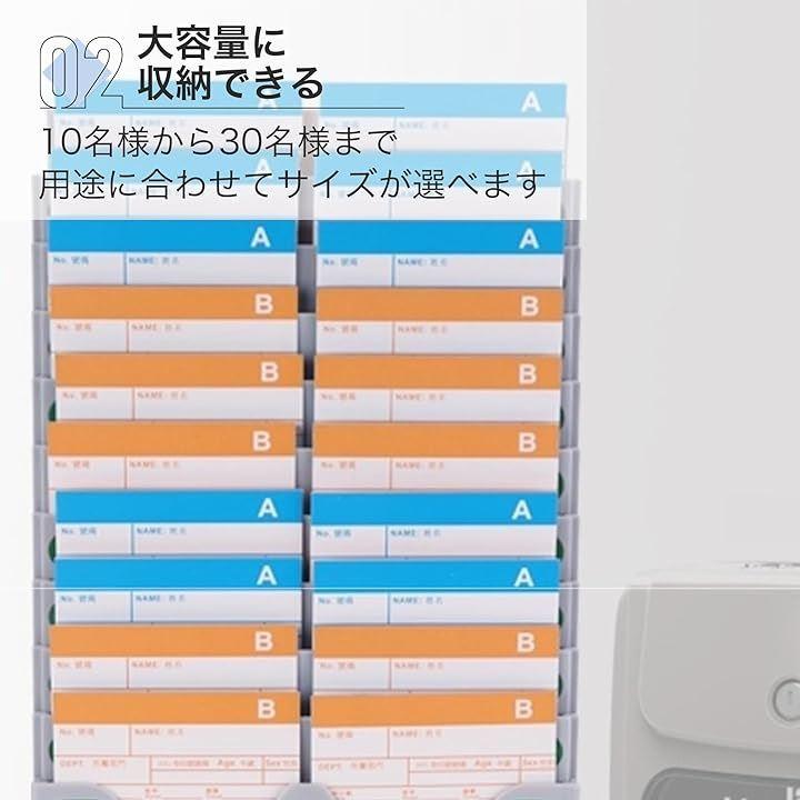 「商品詳細」 10名用サイズ:横18.6cm、高さ29cm 20名用サイズ:横18.6cm、高さ41cm 30名用サイズ:横18.6cm、高さ53cm *収納可能なカード幅は8.8cmまで。
