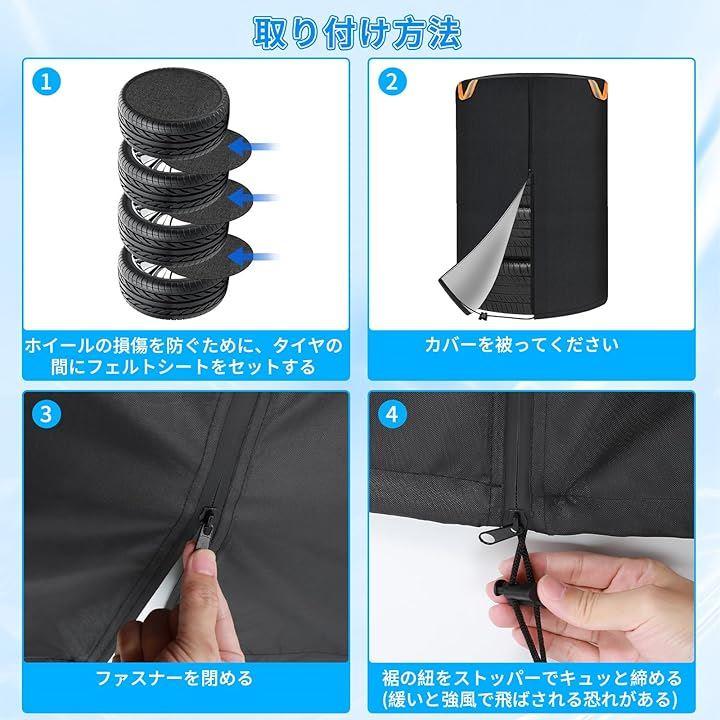 夏の強い日光、雨、雪、ほこり、摩擦などから全方面でタイヤをしっかり守ります。どんな天候にも対応できるのタイヤ保管カバーがおすすめです。