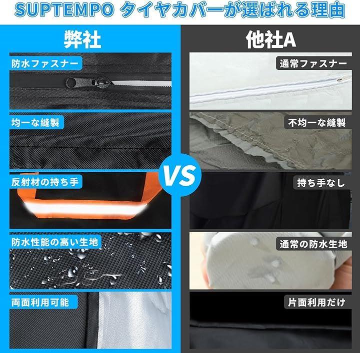 「高品質420D素材&両面利用可能」進化版タイヤカバーの表面は厚手で耐久性があり420Dオックスフォード生地で、裏面にはPU 防水・シルバーコーティング加工が施され、丈夫で破れにくく長時間使えます。