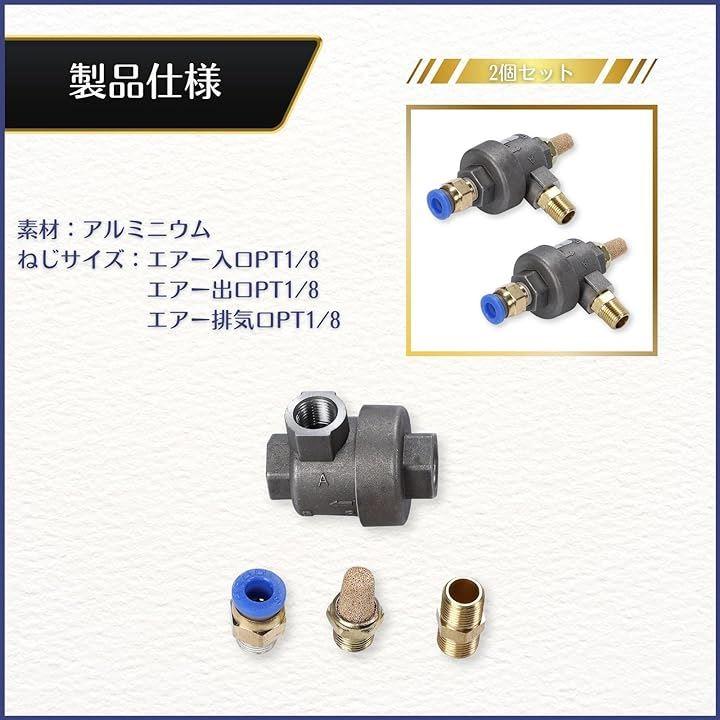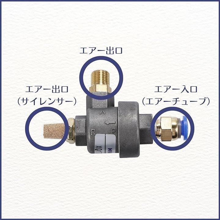 ・ねじサイズ:エアー入口PT1/8(エアーチューブ)、エアー出口PT1/4、エアー排気口(サイレンサー)PT1/4