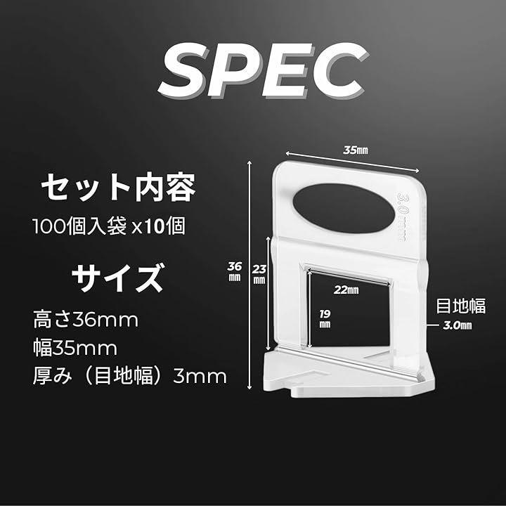 「セット内容とサイズ」100個x10・高さ36mm 幅35mm 厚み(目地幅)3mm