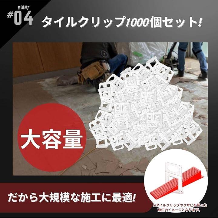 「高精度なタイル施工」1000個セットのタイルクリップは、セラミックタイルや石材の施工時に十字・T字部分の高さと目地幅を調整し、段違いや目地違いを防止。