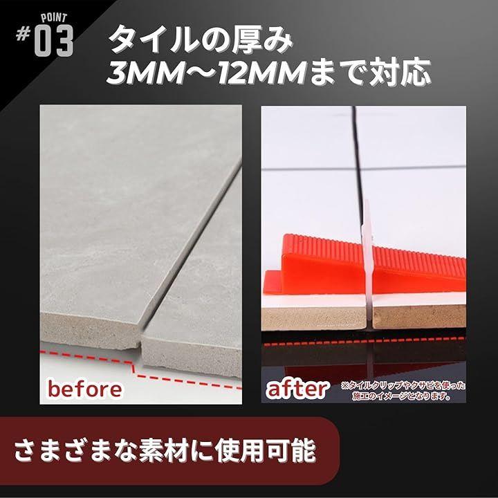 「ご確認ください」スペーサーはタイルから飛び出さないように挿入してください。