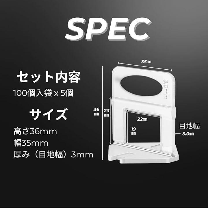 「セット内容とサイズ」100個x5・高さ36mm 幅35mm 厚み(目地幅)3mm