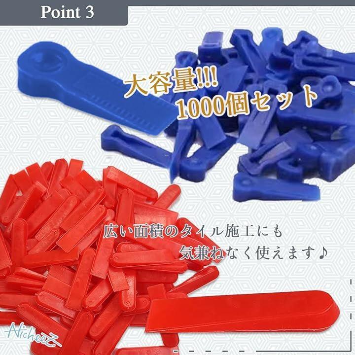 「大容量1000個入り」広い面積のタイル貼りにもたっぷりお使い頂ける大容量の1000個セット。