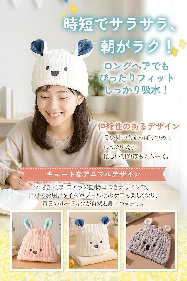 「超吸水速乾素材」コーラルベルベット生地を使用し、15分でしっかりと髪の水分を吸収。