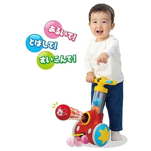 あんよができるようになる1.5歳~3歳過ぎまで長く遊べる、運動を促すミッキーマウスの知育玩具です。ボールを穴に入れたい!ボールを追いかけたい!という子どもの本能をかきたてます。【対象年齢】1.5歳~3歳頃【遊び方】(1)本体にボールを入れる(ボールの入れ方は2種類)・手でボールを出入口から入れる・本体のハンドルを持ち、押しながらボールを吸いこむ(2)ハンドルのボタンを押してボールをポンポン飛ばす・キャラクターボール4個付き(ミッキーマウス、ミニーマウス、ドナルドダック、プルート)