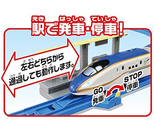 1北陸新幹線の実際の走行シーンを再現!勾配とトンネル、高架のレイアウト!2白色LEDライト付きがかっこよく走る!トンネル遊びもさらに楽しい!32スピード、3両は切り離し可能。