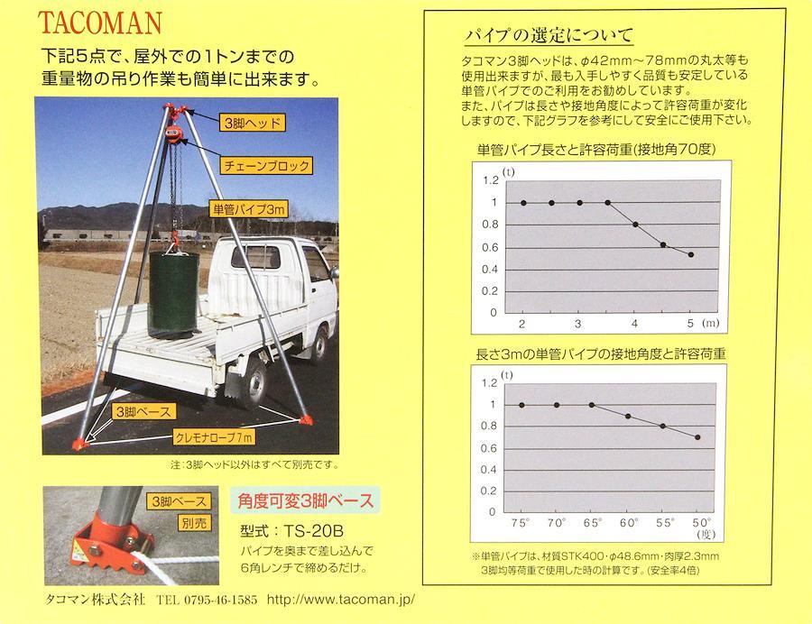 使用荷重:1ton使用パイプ経:Φ42~78mm