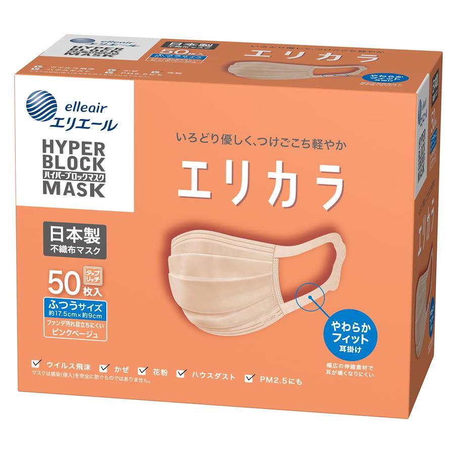 肌なじみのいいナチュラルカラーのラインナップ(3カラー:ピンクベージュ・グレー・ローズ)1)やわらかな耳掛けで耳が痛くなりにくい長時間つけていても耳が痛くなりにくい、独自の「やわらかフィット耳掛け」を採用。伸縮性のある幅広の素材でやさしくフィットします。2)「ムレ爽快フィルター」採用で、息がこもりにくく、ムレにくい 高い捕集性能と通気性を両立した不織布を採用。3)99%カットフィルターで強力ブロック! ウイルス飛沫やPM2.5、かぜ、花粉などの侵入を防ぎます。メルトブローン不織布採用。 フィルター捕集効率試験実施○PFE(微粒子捕集効率試験):99%カット ○VFE(ウイルス飛沫ろ過試験):99%カット○BFE(バクテリア飛沫ろ過試験):99%カット ○花粉捕集効率試験:99%カット リニューアルのため、異なるパッケージが届く可能性があります。 不織布マスク 原産国:日本 サイズ: ふつうサイズ (50枚) 商品の重量: 220 g ブラント名: エリエール ブラント名: タップリッチ