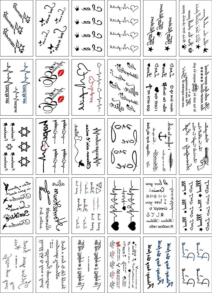 ・こちらのタトゥーシールは、 英字、メッセージ 六芒星 筆記体 などの柄がメインで入っています。