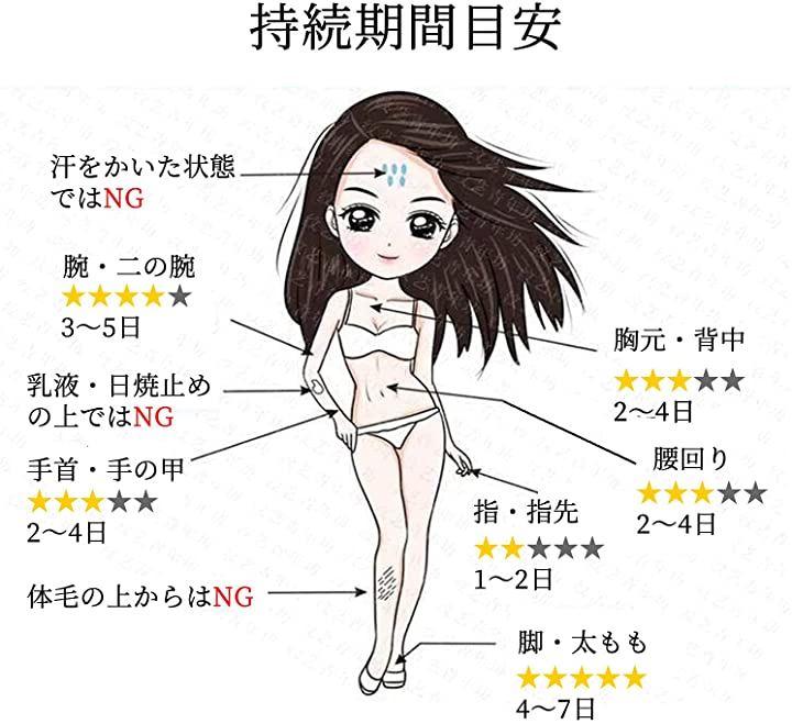 指・首筋・胸元などお好みの映える箇所に貼って楽しめます。