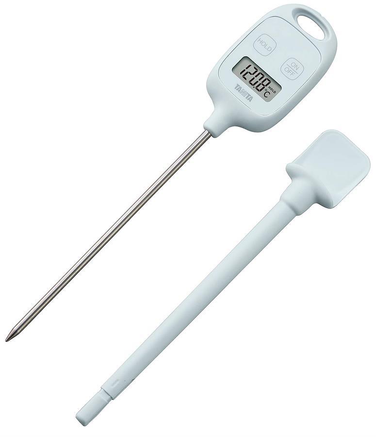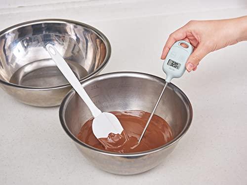 センサーが140mmなので、火元から手を離して測定できる持ち手になるセンサーホルダー。フック穴にセンサーホルダーを差し込んで使うことでより手元を離すことができる空間収納が可能なマグネット、フック穴付き左手で持っても右手で持っても表示部が見やすいはかった温度の表示を固定して確認できる、ホールド機能付き 使用電池:CR2032×1個 (お試し用電池付属) ホールド機能付き。マグネット・フック穴付き 測定温度範囲:-50~240度 サイズ(約):幅4.3×奥行1.5×高さ22.1cm 付属品:取扱説明書、お試し用電池(CR2032×1個)、センサーホルダー 素材・材質:PP(ポリプロピレン)、PET(ポリエチレンテレフタレート)、ステンレス 最小表示:0.1度、表示周期:1秒毎